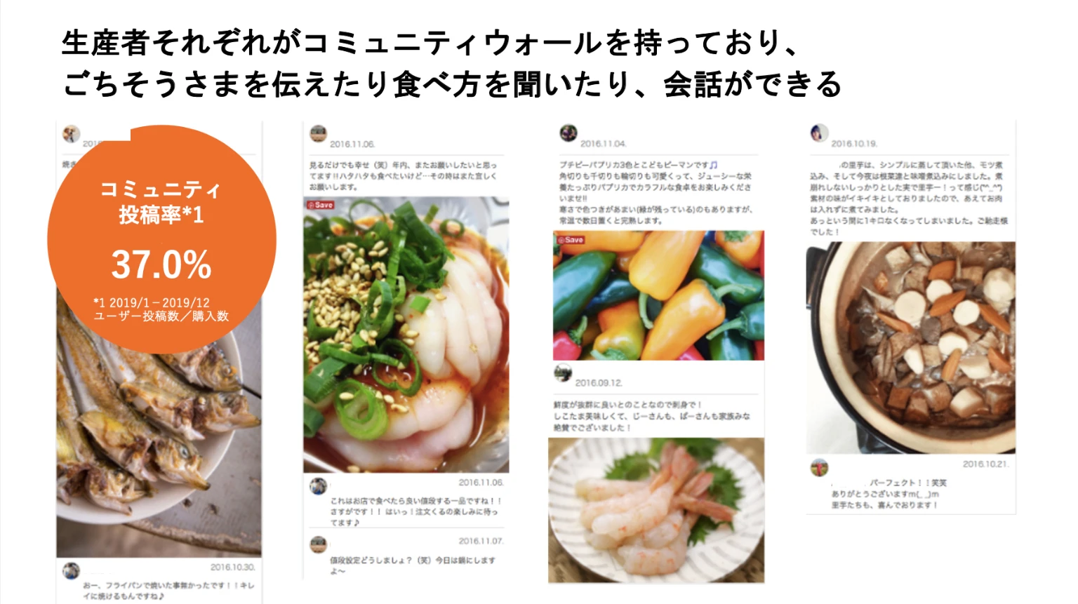 そのため、私たちのサービスは、生産者はどういう人なのか、食材にどんなこだわりを持っているのかがわかり、生産者と直接コミュニケーションが取れるようになっています。